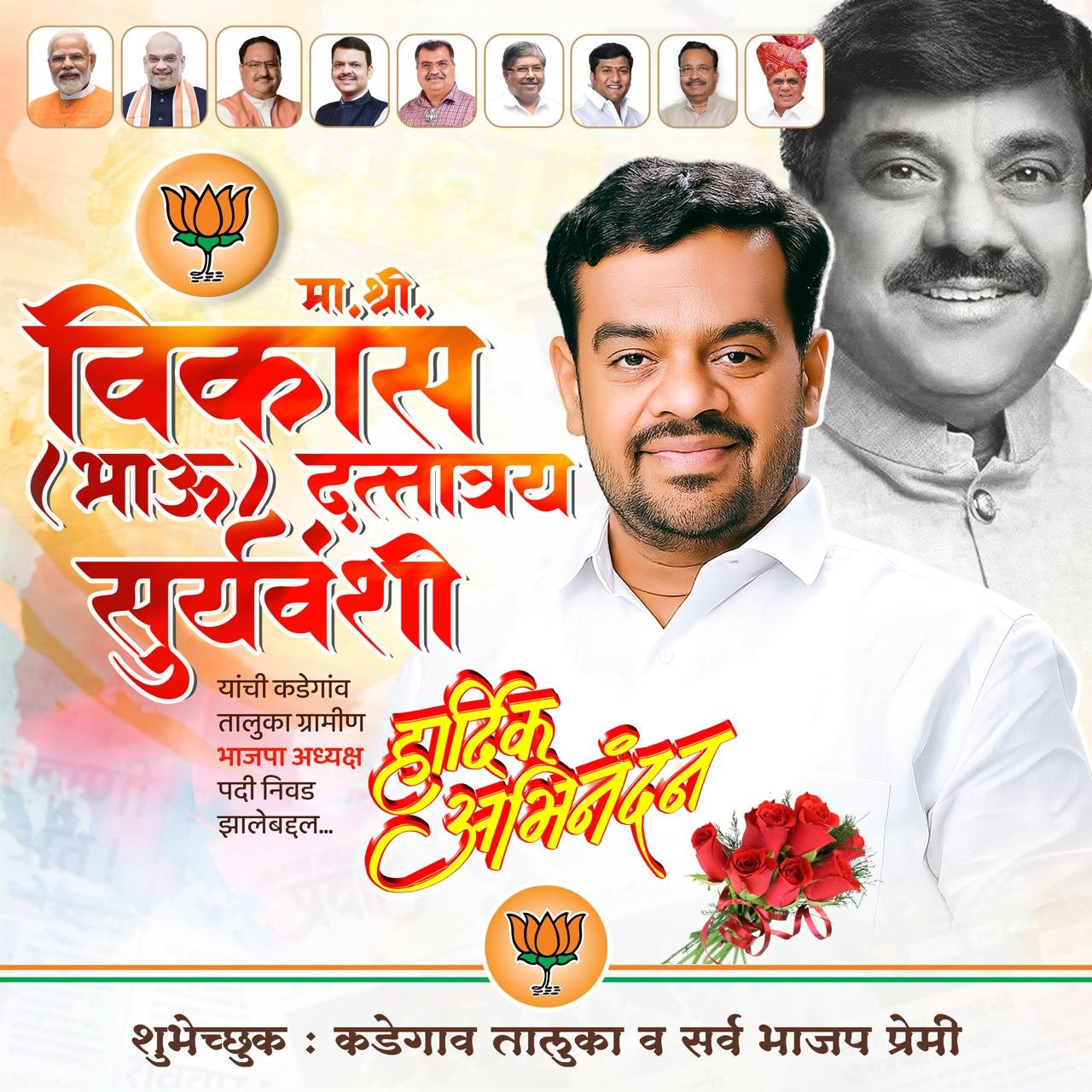 आपल्या वडिलांना आपले आदर्श व प्रेरणास्थान मानून, त्यांच्या कार्याचा वारसा जोपासत आज श्री विकास दत्तात्रय सूर्यवंशी, भारतीय जनता पार्टी, कडेगाव तालुका अध्यक्ष म्हणून कार्यरत आहेत. त्याच सोबत विकास भाऊ सूर्यवंशी हे जीवनधारा उद्योग समूह, जीवनधारा पतसंस्था, जीवनधारा दूध संस्था, जीवनधारा चॅरिटेबल ट्रस्ट, जीवनधारा ग्राहक भांडार, राजवी स्टोन क्रशर, राजवी ट्रेडर्स कराड, वरदराज इंडाने गैस एजन्सी खेराडे वांगी, ओम् एंटरप्राइजेस कराड, अक्युर सॉफटेक प्रायवेट लि. पुणे या सर्व संस्थांद्वारे समाजहिताचे कार्य सतत करत आहेत.